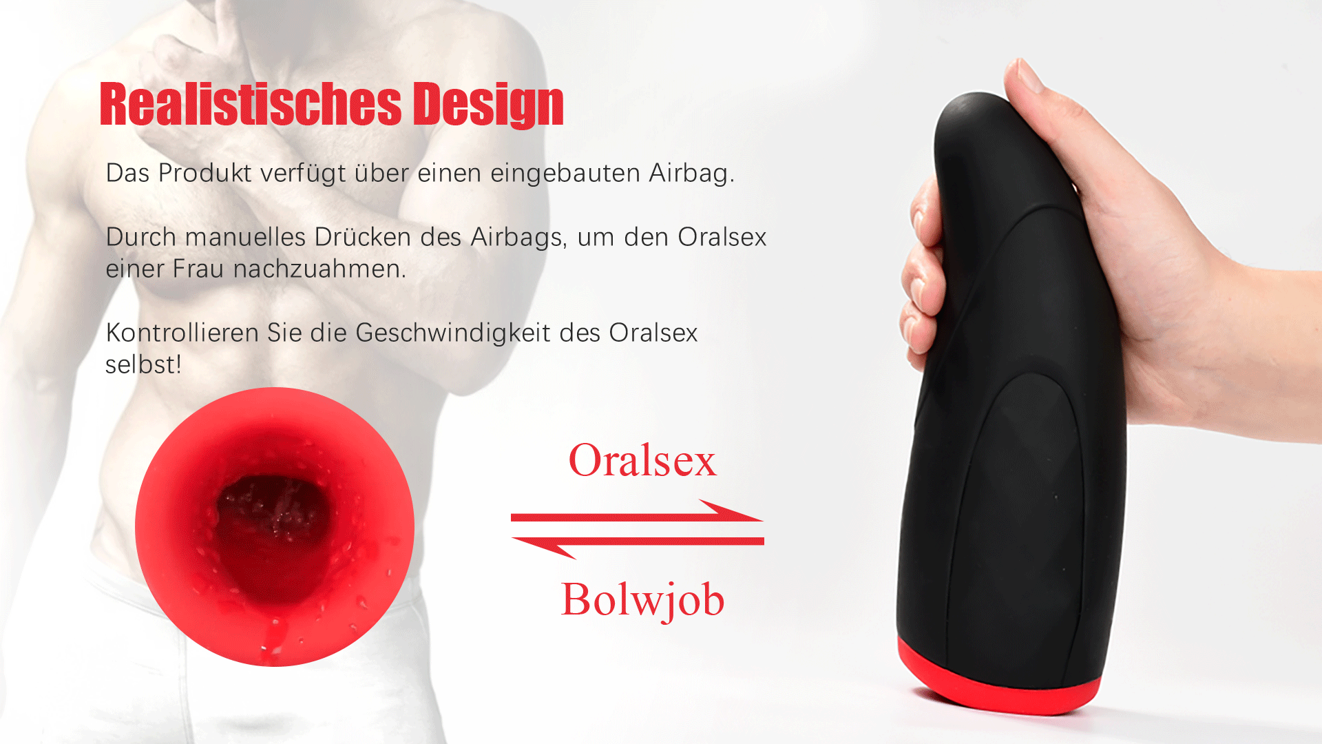 Findest Du die roten Lippen von Frauen sexy? Wolltest Du schon so eine sexy Lippe küssen? Unser Blowjob Masturbator erfüllt alle Deine Fantasien. Deine feurig roten Lippen sind sexy und verführerisch und warten auf Deinen Gefallen. Wenn Du Deinen großen Schwanz in den Masturbator steckst und sehen, wie ihre sexy roten Lippen Deinen Penis umwickeln, wirst Du dich dann extrem irritierend fühlst. Es ist wie die sexy Göttin in Deinen Träumen, die Dir dient. Wenn Du nur daran denkst, bist Du so aufgeregt, dass du nicht kontrollieren kannst. Nach einem heftigen Stoß wirst Du in ihrem Mund ejakulieren und das Vergnügen des Orgasmus machst Du verrückt. Diese Art der visuellen Stimulation, die voller Sperma aus ihren roten Lippen fließt, wirst Du auf jeden Fall zufrieden stellen.