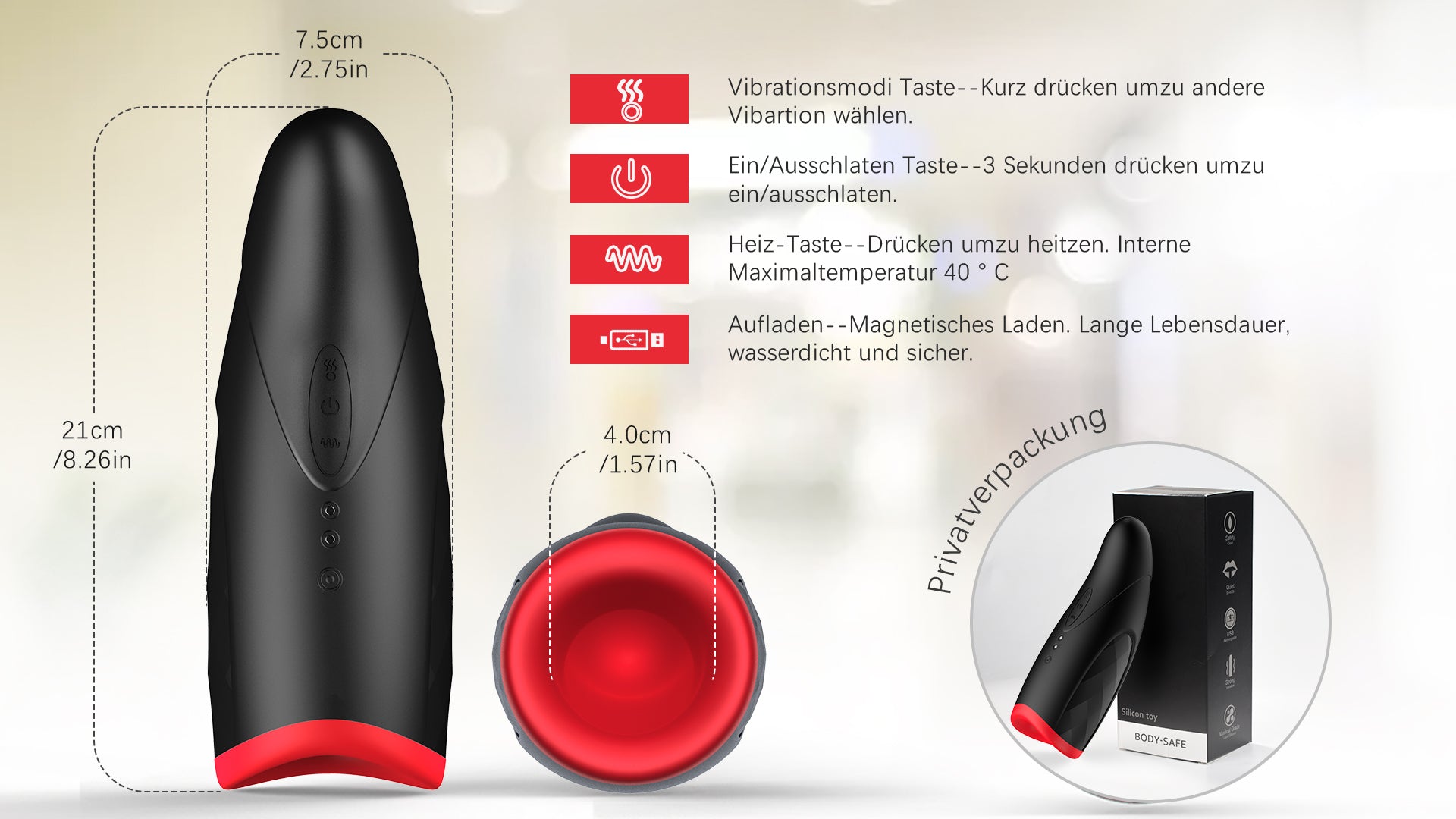 ♡40 Grad Heizfunktion, reale menschliche Körpertemperatur simulieren